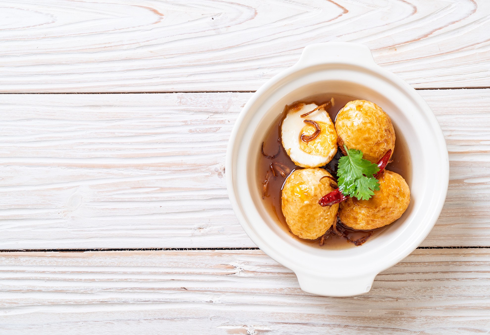 Frittierte Eier in Tamarindensauce sind in Thailand ein traditionelles Gericht. Es besteht aus gekochten und danach frittierten Eiern mit einer süßsauren Sauce aus Tamarindenpaste, Fischsauce, Schalotten, Chili-Schoten, frischem Koriander und Zucker.