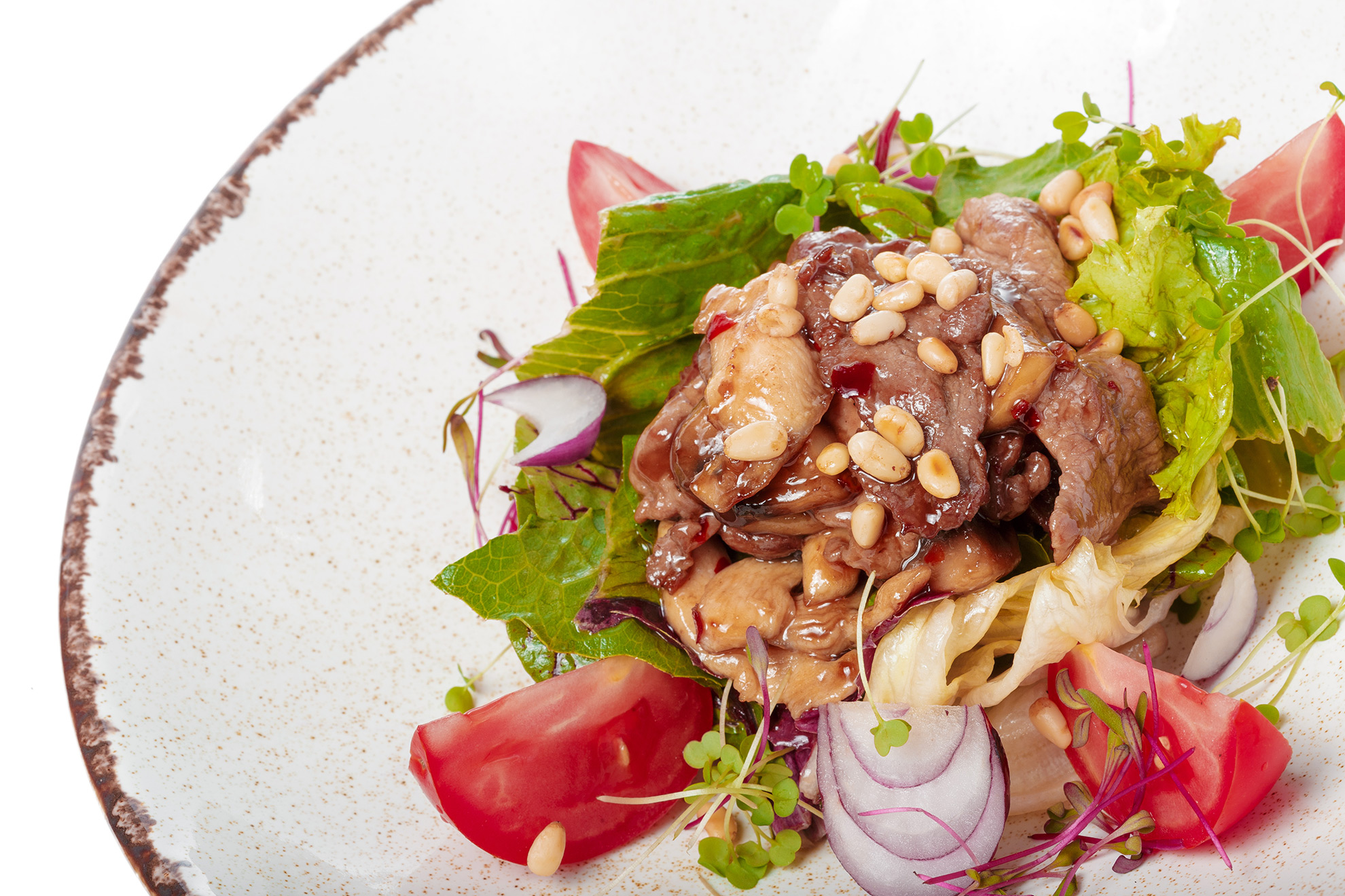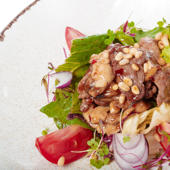 Die Hauptzutat des thailändischen Rindfleisch-Salat ist ein qualitativ hochwertiges Steak. Hervorragend geeignet sind hier ein Rumpsteak mit Fettrand oder ein Rib-Eye-Steak mit seinem saftigen Fettkern. In dünne Scheiben geschnitten wird das Fleisch mit frischen, thailändischen Kräutern vermengt. Das scharf saure Dressing dazu macht den Salat dann zu einer echten Geschmacksexplosion.
